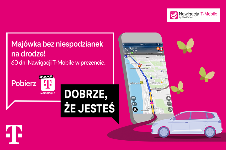 Coraz cieplejsze wiosenne dni zachęcają do bliższych i dalszych wycieczek. Choć jako T‑Mobile nie mamy wpływu na pogodę, to możemy pomóc naszym klientom indywidualnym dotrzeć bezpiecznie do celu – dlatego przygotowaliśmy dla nich specjalną promocję, w ramach której mogą bezpłatnie skorzystać z usługi Nawigacja T‑Mobile – Mapy Polski przez 60 dni. Prezent można odebrać od 22 do 26 kwietnia w aplikacji „Mój T‑Mobile” lub „Nawigacja T‑Mobile”.