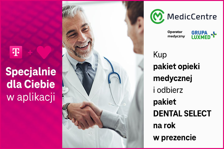 Unikalny link, uprawniający do skorzystania z oferty, dostępny będzie w aplikacji „Mój T-Mobile” do 27 września. Dzięki niemu przy zakupie dowolnego pakietu medycznego, realizowanego w placówkach Grupy LUXMED na okres 12 miesięcy, po 15 dniach klient otrzyma od MedicCentre kod uprawniający do aktywacji Pakietu Dental Select w prezencie.